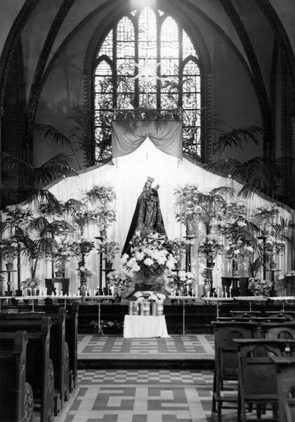 Kerk en religie | Tijdens de tocht door Limburg kwam het Maria-beeld "Sterre de Zee" ook naar de St. Lambertuskerk in Reuver. Het waren zeer indrukwekkende dagen voor de parochianen. | Karel Doormanlaan 2 | Reuver | 1953 | ||||