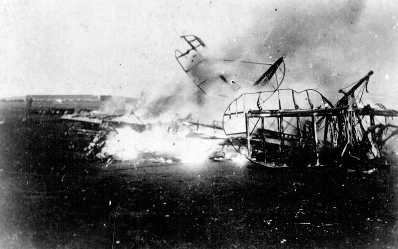 Oorlog | De wrakstukken van een neergehaalde en uitgebrande zeppelin | Plaats onbekend | ||||||