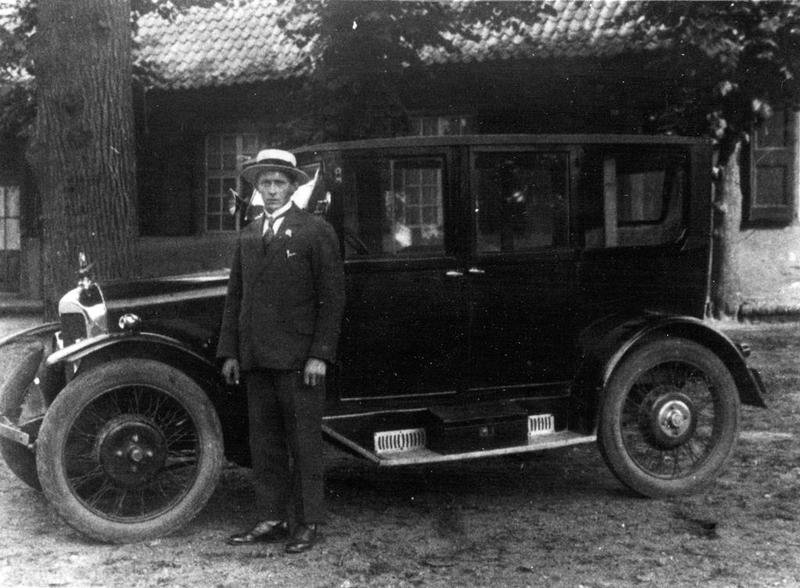 Vervoer overig | Vanuit Blerick vestigde zich in 1935 het echtpaar Gerard en Nellie Janssen in Reuver. Ze gingen in die jaren niet alleen een café aan de kerk exploiteren maar Gerard Janssen startte tevens met het eerste taxibedrijf in Reuver. Op de foto De Gerard Janssen voor zijn taxi. De foto werd overigens in Baarlo genomen. | Pastoor Vranckenlaan 7 | Reuver | |||||