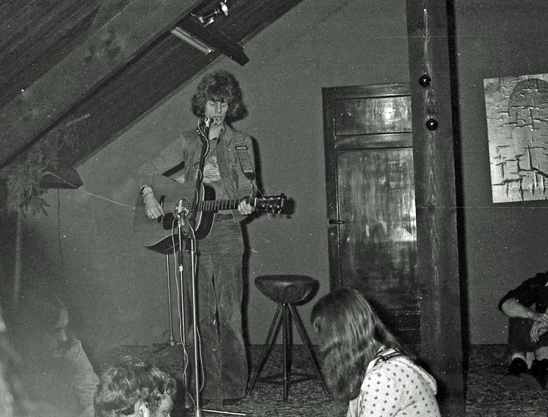 Armand – protestzanger – treedt op in Open Jongeren Centrum (OJC) PIEJUS. Op de zolder van het gemeenschapshuis De Schakel (het voormalige PIUS-gebouw) zingt hij liedjes zoals bijvoorbeeld “Ben ik te min”. Armand artiestennaam is Harrie van Loenhout, Eindhoven 1946-2015. |