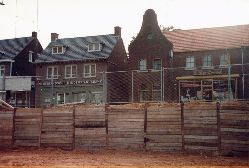 Gebouwen overige | De woning van Lambert v.d. Velden werd afgebroken om plaats te maken voor winkelpanden en appartementen. We zien de Nederlandse Middenstandsbank en de winkel van Rob Cremers op de achtergrond. | Rijksweg 35 | Reuver | 1990 | ||||