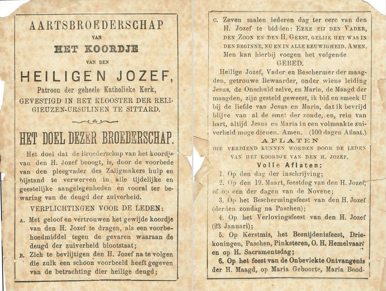 Het Aardbroederschap van "Het Koortje van den Heilige Jozef" was gevestigd in het klooster der religieuze Ursulinen te Sittard. Ook vanuit Reuver werden destijds bedevaarten georganiseerd naar de Rosa Kapel. |