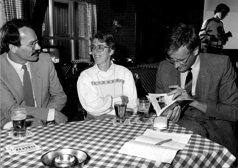 Heemkundevereniging | Burgemeester Nuytens bekijkt het nieuwe jaarboek 1984 onder toeziend oog van voorzitter Wiel luys en Mevrouw Nuytens | Keulseweg 103 | Offenbeek | 1985 | ||||