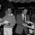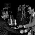 Heemkundevereniging | Sjra Vincent ontvangt, in het bijzijn van burgemeester Nuytens, het boek "De laatste loodjes wegen het zwaarst" uit handen van voorzitter Wiel Luys. | Raadhuisplein 1 | Reuver | 1985 | ||||