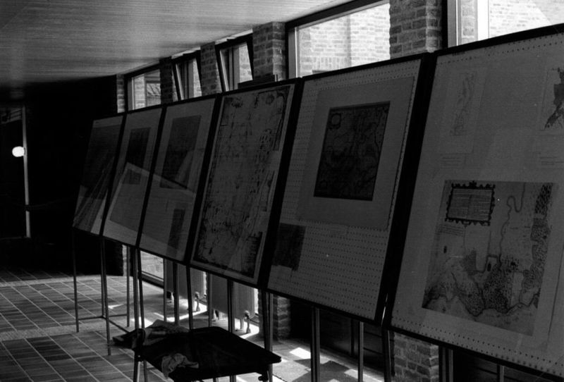 Gebeurtenissen | Een rij met oude landkaarten tijdens de door de Archeologische Werkgroep Beesel georganiseerde tentoonstelling "Bieslo aen die Maese " in de hal van het gemeentehuis. Deze tentoonstelling t.g.v de opening van het nieuwe gemeentehuis werd behalve door de Archeologische Werkgroep ook ingericht door Herman en Jo Thijssen en Jan Ickenroth. | Raadhuisplein 1 | Reuver | 1980 | ||||