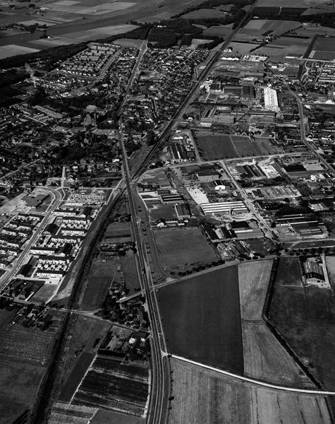 Luchtfoto van de omgeving van de Rijksweg. Links boven is de Wildenkampschool in aanbouw. |