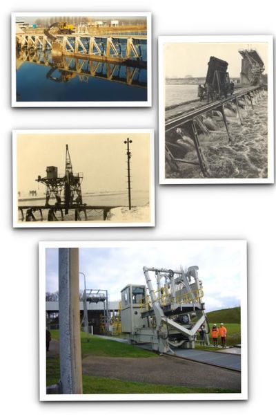 Gebouwen overige | De vier verschillende kranen waarmee de schuiven bij de stuw gestreken of geplaatst konden worden. | Stuw | Belfeld | |||||