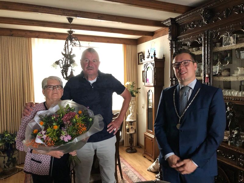 Gebeurtenissen | Het echtpaar Martien en Sientje Van de Kerkhof - Jacobs werd verrast door een bezoek van burgemeester Bob Vostermans bij gelegenheid van hun 50-jarig huwelijk. | Stationstraat | Reuver | 9-7-2020 | 2020 | |||