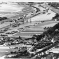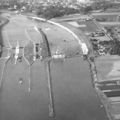 Luchtfoto's | Luchtfoto met hierop de stuw van Belfeld. Door het hoge water in de Maas is de stuw gestreken en ligt het scheepvaartverkeer stil. | Stuw | Belfeld | 1950 | ||||