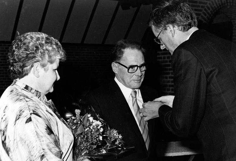 Dhr. Kuiper krijgt een onderscheiding van toenmalig burgemeester Nuytens. |