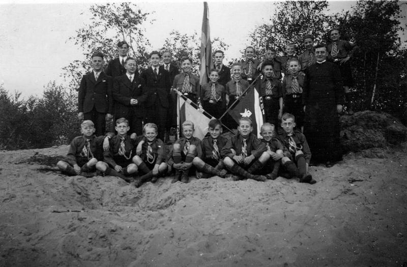 Verenigingen en organisaties | Groepsfoto van de verkenners van Scouting Lambertus, op de Walsberg | Walsbergweg | Reuver | |||||