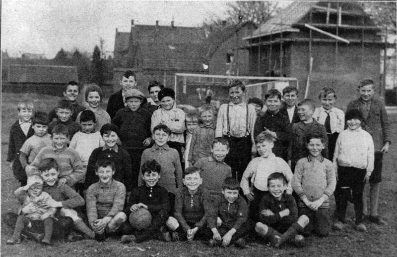 Een ongebonden jeugdvoetbalgroep met o.a.: Zittend: Huug Vossen op de schoot van Matthieu Vossen, Wiel Kleyne, Paul Thijssen (met bal), ook lid van Blauw-Wit, een voetbalvereniging, die op dat terrein voetbalde, Sjra Litjens, Jo Thijssen (naamgever), Jan Theelen. Hurkend: H. Giesen, Piet van Buggenum (?), Jan Hillekens, Harie Peeters, N.N., H. Gommans. Staande: ...Timmermans, L. van Buggenum, Sjra Giesen, Hub Theunissen, N.N., J. Hovens (met muts), Heini Muller, Wiel Dorssers (met pet Meer ... |
