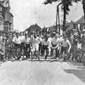Leden van gymnastiek en atletiek vereniging "Hercules' tijdens een wedstrijd in Sittard. Van links naar rechts: Zittend op de grond 1 Jeu Bremmers 2 Lei Rutten 3 Jan Kessels (Chauffeur bij L. vd Velden) boven: 1 Piet Verkoulen 2 Knips (Bakker bij L. Rutten 3 Len Killaars 4 Giel Steeghs 5 Frits Cremers |