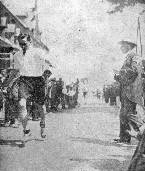 Gymnastiek en atletiek vereniging "Hercules" viert haar 25 jarige jubileum met het organiseren van sportfeesten in het centrum van Reuver. Hier de finish van de hardloopwedstrijd |