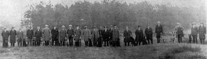 "Hondsterrein" In de dertiger jaren aangelegd voor het jeugdwerk. Politiehondenvereniging St. Hubertus bij haar 10 jarige bestaan. De heer Houthakkers geheel rechts op de foto is dan 10 jaar instructeur van de vereniging. |