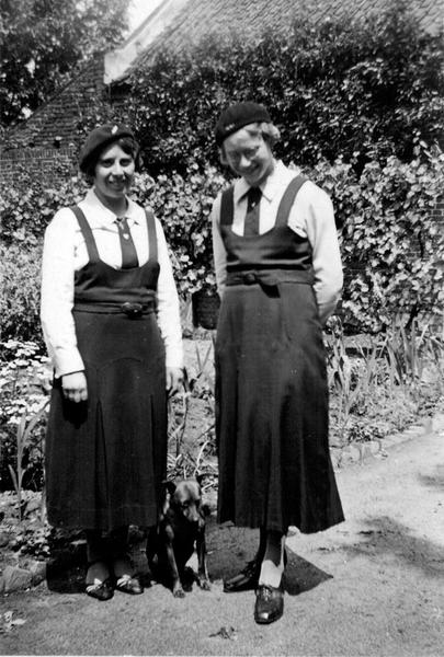 Twee leden van de K.J.V. (Katholieke Jonge Vrouwenvereniging). Links Maria Goossens en rechts To Goossens |