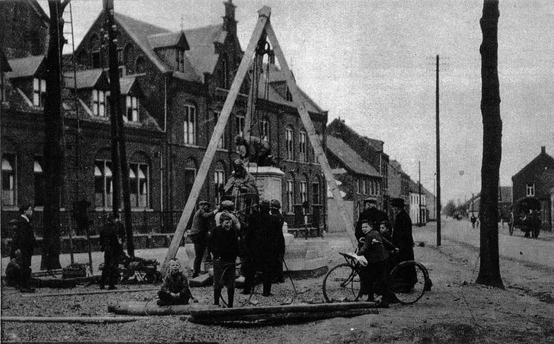 Kerk en religie | Het plaatsen van het H.Hartbeeld op het plein voor het oude raadhuis in Reuver. Rechts op de rug gezien staat Sjeng Steeghs. | Pastoor Vranckenlaan 3 | Reuver | 1927 | ||||