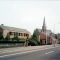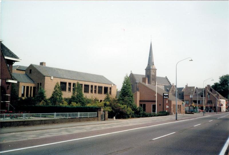 Gebouwen overige | Het centrum van Reuver met op de voorgrond het gemeentehuis en de ABN-AMRO bank en op de achtergrond de St. Lambertuskerk | Raadhuisplein 2 | Reuver | 1985 | ||||