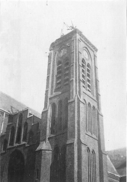 Kerk en religie | De in de Tweede Wereldoorlog kapot geschoten torenspits van de St.Lambertuskerk in Reuver. | Karel Doormanlaan 2 | Reuver | 1950 | ||||