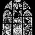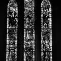 Glas-in-lood raam in de St.Lambertuskerk voorstellende het laatste oordeel. Ontwerp Max Weiss (1960) |