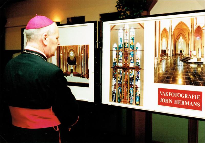 Kerk en religie | Bisschop Frans Wiertz tijdens de opening van de expositie over het kerkelijk gebeuren uit het verleden van de St. Lambertusparochie en over de restauratie van de kerk. | Karel Doormanlaan 2 | Reuver | 28-4-1996 | 1996 | |||