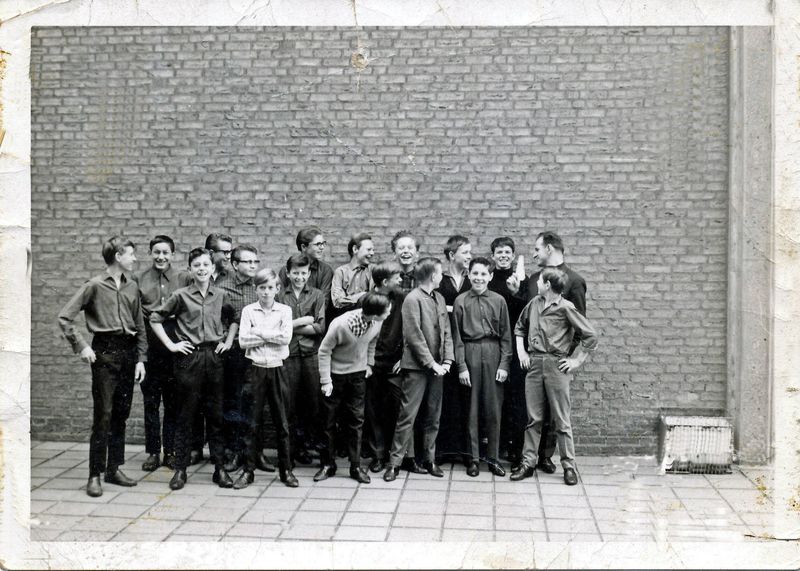 Schoolfoto van een klas van de LTS Tegelen uit 1965 met jongens uit Reuver - Belfeld en Tegelen. Van links naar rechts: voorste rij: 1 Peter Gitmans, 2 Jo Vervoort , 3 Johan Sambeek, 4 Geert Verstappen, 5 Hay Faassen , 6 Jo Berbers 7 Albert Roemerman?, 8 Arno Wilmsen, 9 Chrit Verstappen. Achterste Rij: 1 Jos Koster, 2 Jan Broekman, 3 Wim Wetsel. 4 NN, 5 Ben Gommans 6 Janssen, 7 Ton Miggels, 8 Jan Timmermans, 9 kapelaan Maas. |
