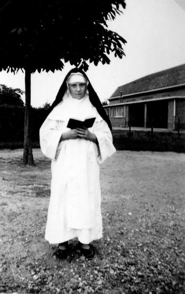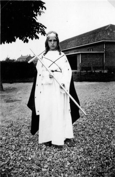 Kindheisoptocht: "Zuster" op de speelplaats van de oude bewaarschool. |