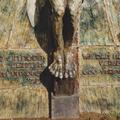 Inscriptie voet kruisbeeld Sint Jorisstraat. Het oorspronkelijke kruis op deze plek werd in 1944 door een granaatinslag vernield. Atelier: Sint Joris Ontwerper: C. Grips Foto: 1989 |
