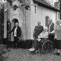 Kapel van de Onderste Hof Gezusters Mobers (Dochters van Sef Mobers) bij het Mariakapelke (Klaashofkapelke). Van links naar rechts: Nellie Rovers - Mobers, Ann Mobers, Martha Linssen - Mobers, Mie Killaars Mobers, To Bergs Mobers |