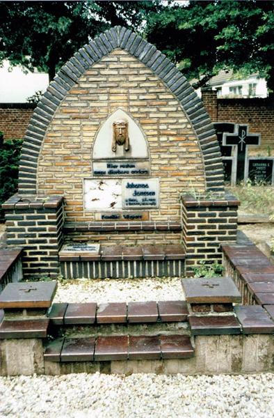 Grafmonument Joseph Weyers en Johanna Janssen Grafmonument: stele van Lilliputsteentjes; Graf nummer E98-99. Dubbelgraf van Joseph Weyers * Neer 21-8-1875; + 19-2-1940 en Johanna Janssen * Neer 7-4-1875; + Reuver, 28-5-1947 |