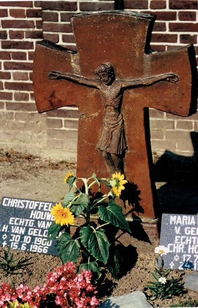 Grafmonument Familie Houwers Keramisch kruis gemaakt bij Teeuwen Keramiek. Ontwerp en uitvoering Matthieu Oehlen. Stoffel Houwers was assistent van de bedrijfsleider van de keramiek. |