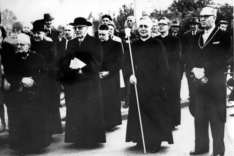 Installatie Pastoor Gereats. met op de eerste rij van links naar rechts Pastoor Geurts (Beesel) - Deken Stoot (Tegelen) - Kaplaan Lebens (Reuver) en burgemeester Mooren. Op de tweede rij van links naar rechts Rector Weiss (Offenbeek) - Nico Feine |