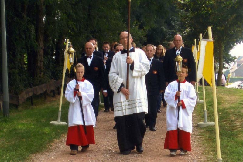 Kerk en religie | In 2008 vond de laatste processie naar de St. Lambertuskapel plaats. Voorop Wim Hukkelhoven met het processiekruis. Daarachter het Philharmonisch Gezelschap. Het bestuur wordt vertegenwoordigd door Peter Cox, Mart Jansen(president), Roy Peters (penningmeester), Herbert van Leipsig (secretaris). | Sint Lambertusweg | Reuver | 2008 | ||||