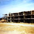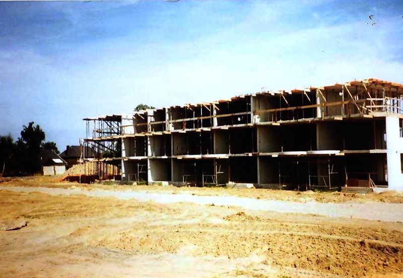 Bejaardenflat "Biej de breer" in aanbouw. Op de achtergrond de fabriek van Teeuwen. |