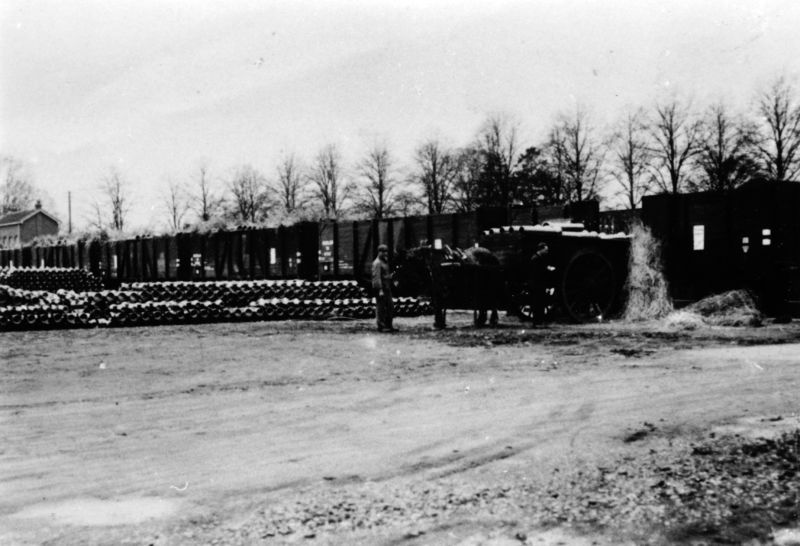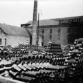 Greswarenfabriek Janssen-Willemsen Met paard en kar worden de gresbuizen ingeladen voor vervoer. Links is nog net het station te zien. Het verzenden kon per spoor of per boot: per spoor f 15.70 /ton, per boot f 8.00 /ton. |