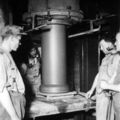 Een trotse Thei Leenen bij een reuzehulpstuk voor de metro van Parijs. Greswarenfabriek Janssen-Willemsen. |