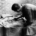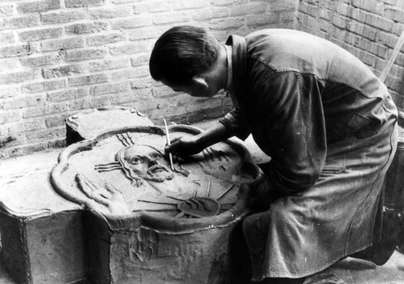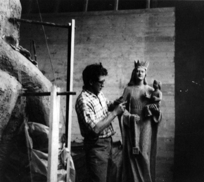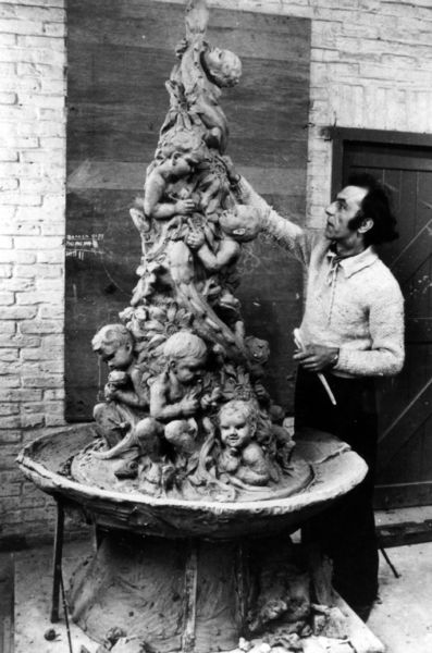 Fabrieken / Bedrijven | Charles Grips bezig aan een fontein (St. Joris). | Sint Jorisstraat 54 | Beesel | 1946 | ||||