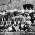Personeel en directie fabriek Janssen-Willemsen in 1910. Eerste rij liggend: 1. N.N. 2. N.N. 3. Frans Heinen 4. Baer Steeghs 5, N.N. 6. Thei Leenen. Tweede rij zittend: 1. Chris Verkoelen 2. Sjaak Franssen (Pogkes) 3, Tinus Verrijth (Van Brome Naad) 4. N.N. 5. Engelbert Peeters? 6. N.N. 7. N.N. Derde rij staand: 1. Jos Janssen, eigenaar 2. August Heldens, aannemer van de bouw van de fabriek in 1904 (Vandaar de foto bij mevr. Heldens, Groenstraat.) 3. H. Ramakers 4. N.N. 5. N.N. Meer ... |