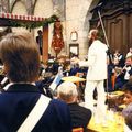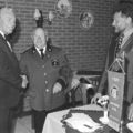 Verenigingen en organisaties | Louis Heinen, president van het Philharmonisch Gezelschap, feliciteert de heer Wilms, voorzitter van het trommel-en fluiterkorps St. Barbara met het behalen van het Nederlands Kampioenschap. Rechts de heer Den Dulk. | Keulseweg 99 | Offenbeek | |||||