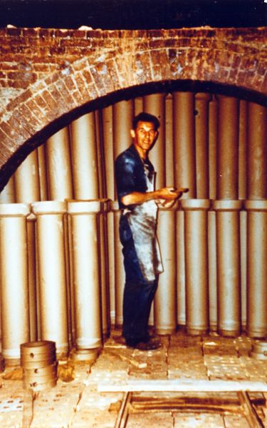 Fabrieken / Bedrijven | Buis wordt op wagen voor droogkamer gezet. Greswarenfabriek Laumans | Keulseweg 86 | Offenbeek | |||||