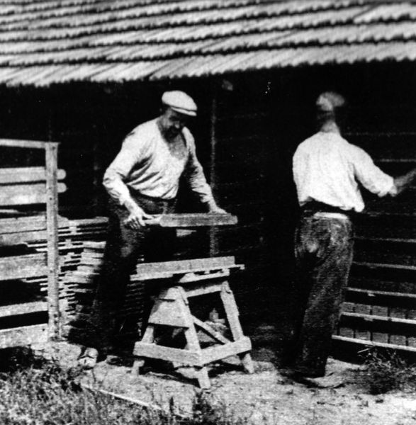 Fabrieken / Bedrijven | De stenen worden uit de handvorm geslagen en in de droogrekken geplaatst. | Plaats onbekend | ||||||