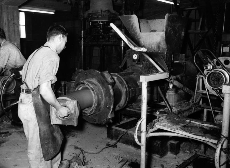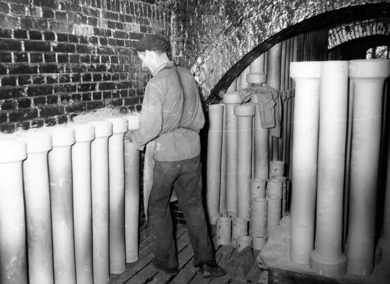 Fabrieken / Bedrijven | Het "zetten" van de buizen in de vlamoven bij de NGI. | Stationstraat 9 | Belfeld | 1957 | ||||