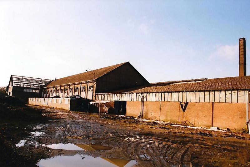 Fabrieken / Bedrijven | Voormalige gresbuizen- en tegelfabriek van Janssen-Dings kort voor de sloop. Links tunneloven. Foto richting zuiden. | Industriestraat 43 | Belfeld | 1999 | ||||