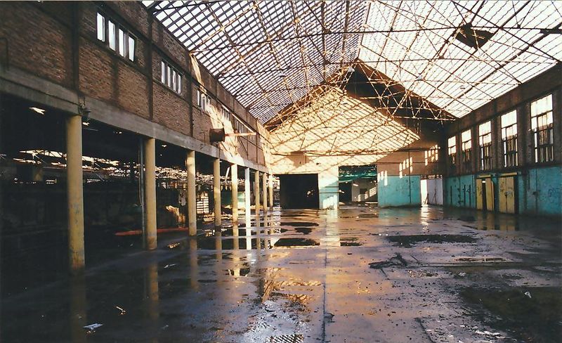 Fabrieken / Bedrijven | Voormalige gresbuizen en tegelfabriek van Janssen-Dings kort voor de sloop. Vanuit interieur naar noorden. | Industriestraat 43 | Belfeld | 1999 | ||||