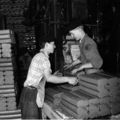 Sjeng Hermans en Bert van Soest (rechts) bij de productie van lilliputsteentjes waarvan de productie in 1949 bij Janssen-Dings werd gestart. |