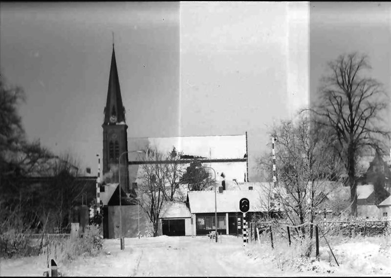 Gebouwen overige | Overweg in de Broeklaan gezien vanuit Offenbeek (wintertafereel). Op de achtergrond de St. Lambertuskerk. | Wilhelminalaan 20 | Reuver | 4-1-1985 | 1985 | |||