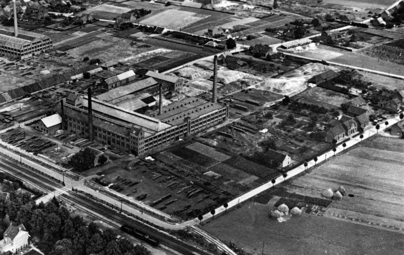 Linksboven: Teeuwen, midden: Lager, fabriek en raccordement gresbuizenfabriek Janssen-Willemsen na de brand in 1940. Rechts boven: raccordement Laumans. |