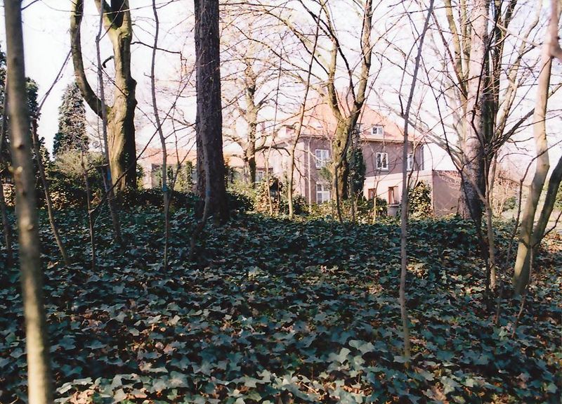 De ten noorden van het Theresiaklooster gelegen tuin met Mariagrot. Dit deel van de tuin is verdwenen bij de bouw van het appartementencomplex aan de Schoolstraat 42. |