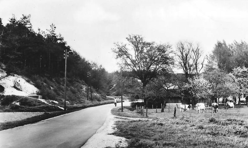 Wegen | Boerderij Maalbeek, zicht over de Maalbekerweg in oostelijke richting. Links is nog de kazemat, een zogenaamde Tobruk, zichtbaar. | Maalbekerweg 24 | Belfeld | 1965 | ||||