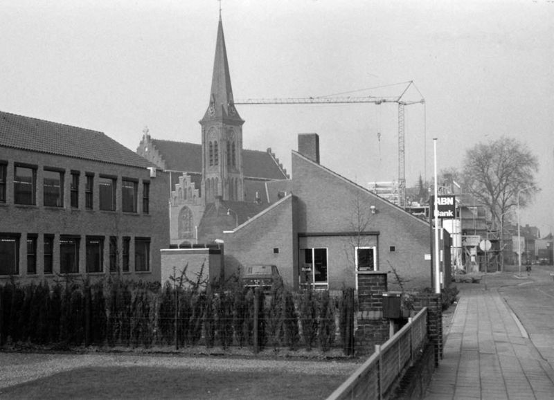 Gebouwen overige | Gemeentehuis, kerk en ABN-bank gezien vanaf de Rijksweg. | Raadhuisplein 2 | Reuver | |||||